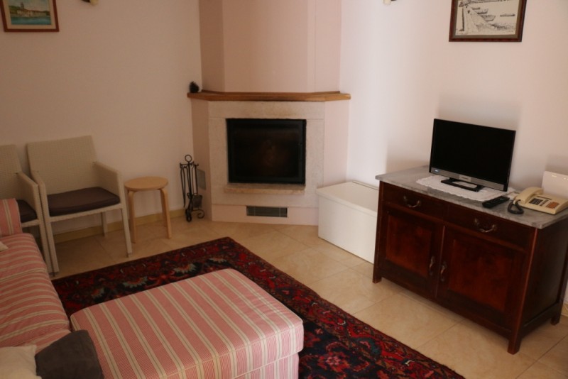 Pred hišo je senčna terasa, kjer je tudi na najbolj vroč dan posedanje prijetno. Z vogala kjer stoji miza, se odpira pogled na morje, cesto ob pristanišču in bližnji hotel. S terase vstopimo v hišo, kjer nas takoj ob vratih s črno bele slike pozdravi mlada babica Mattea. Nanjo je ohranjen spomin tudi v drugih prostorih, kjer tu in tam stojijo njene omare ali kakšni manjši predmeti.